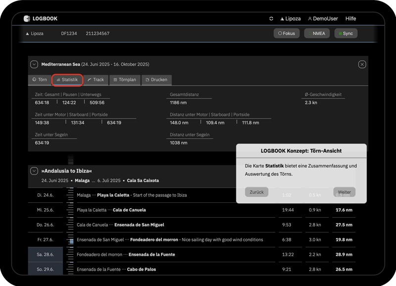 Kein mühsames Handschreiben mehr, keine vergessenen Einträge, kein Ärger mit unleserlichen Notizen. Und das Beste: Du kannst jeden Eintrag ganz einfach um persönliche Beobachtungen, Fotos oder Wetternotizen ergänzen. So wird dein Logbuch auch eine wertvolle Erinnerung an deine Törns.