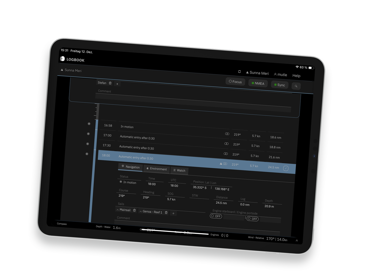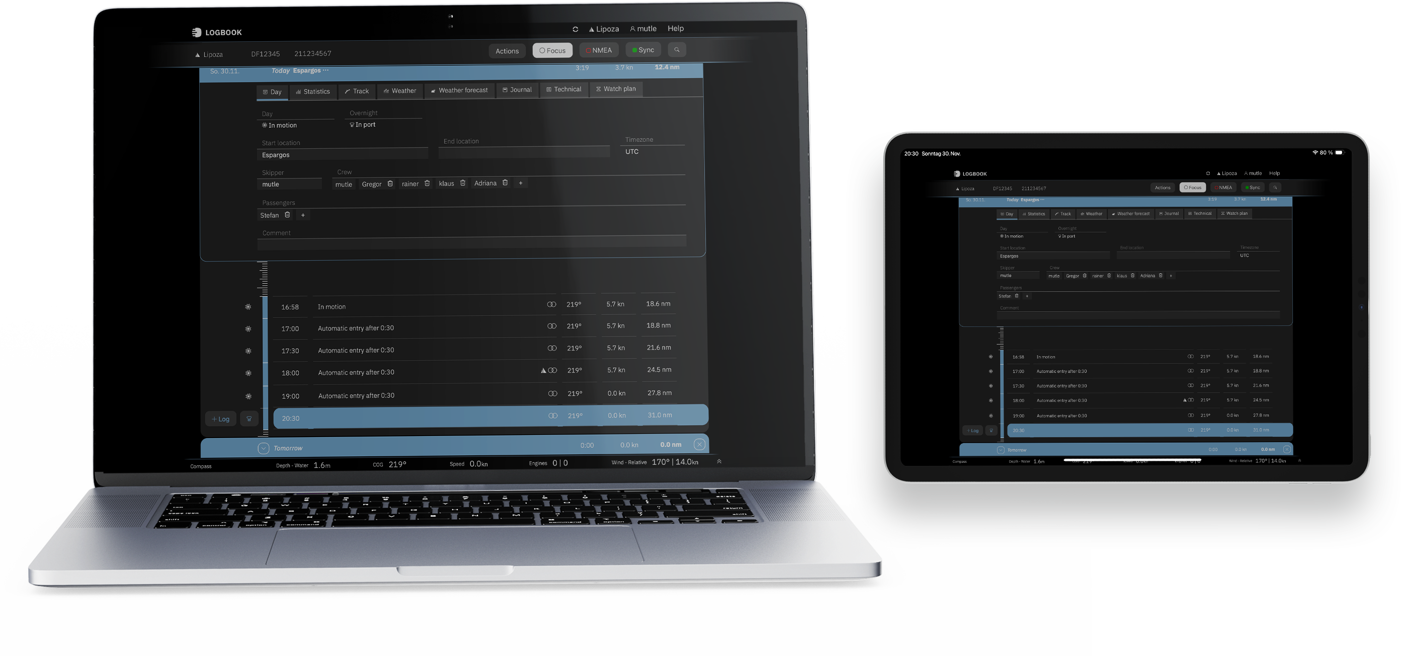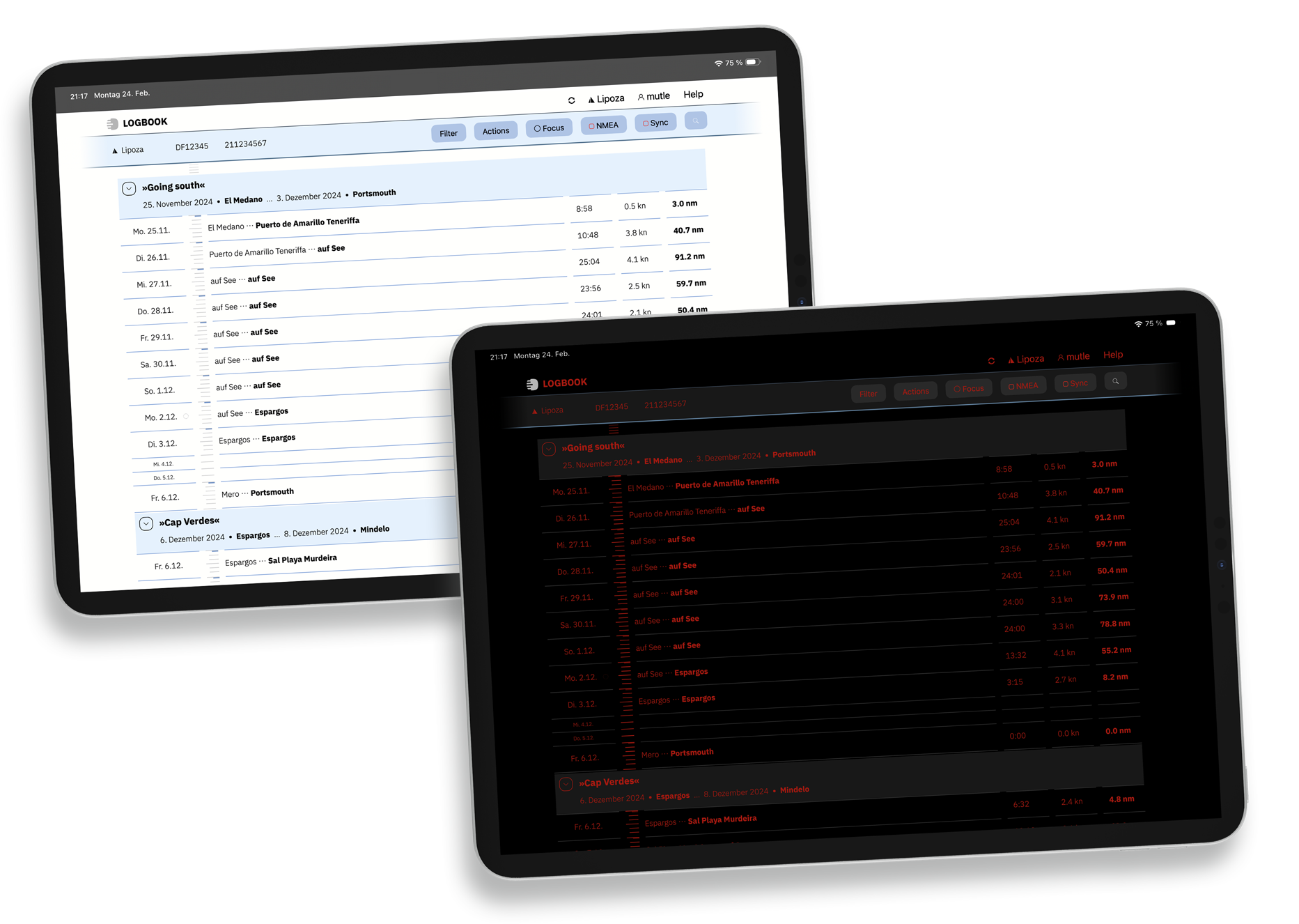The standard interface is optimized for self-illuminating displays, while Classic Mode eases the transition from Logbook Suite to LOGBOOK. Night Mode ensures glare-free logbook operation – ideal for night passages.